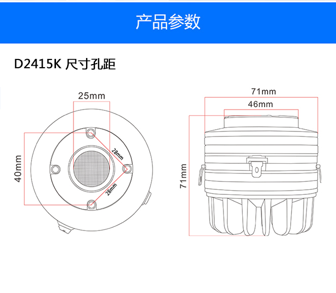 单元驱动/喇叭 - 高音驱动 - D2415K 2x1.5寸 钕磁高音驱动单元