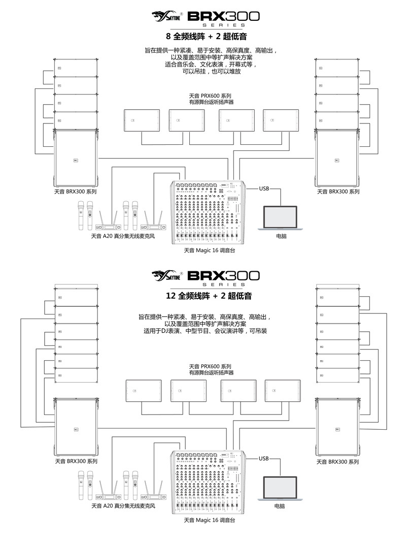 BRX300 系列双10寸线阵+双18寸超低音