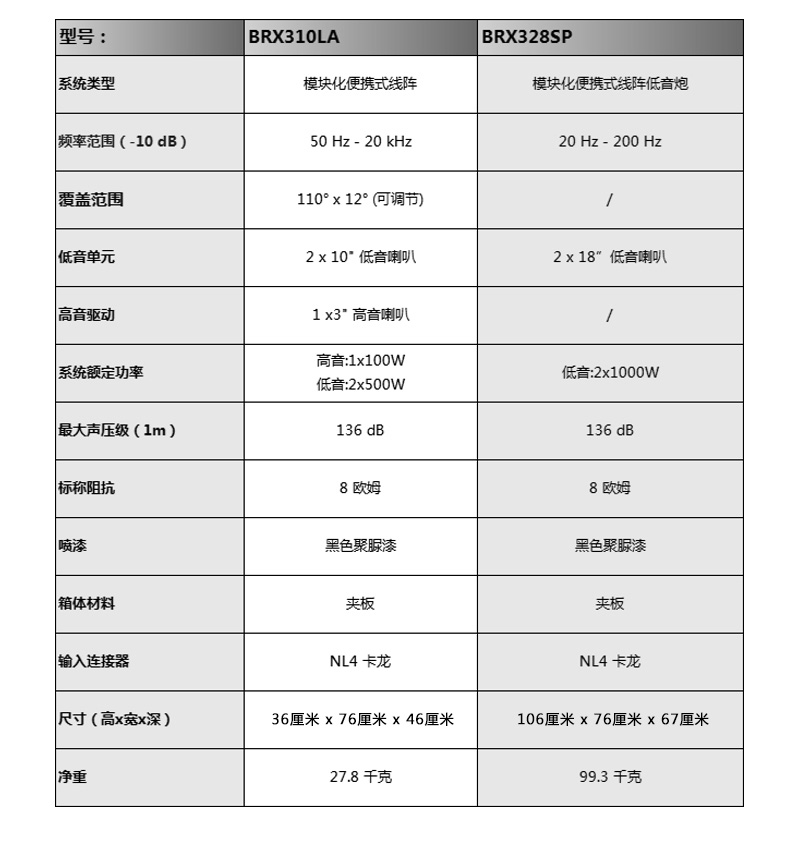 线阵音箱 - BRX300线阵系列 - BRX300 系列双10寸线阵+双18寸超低音