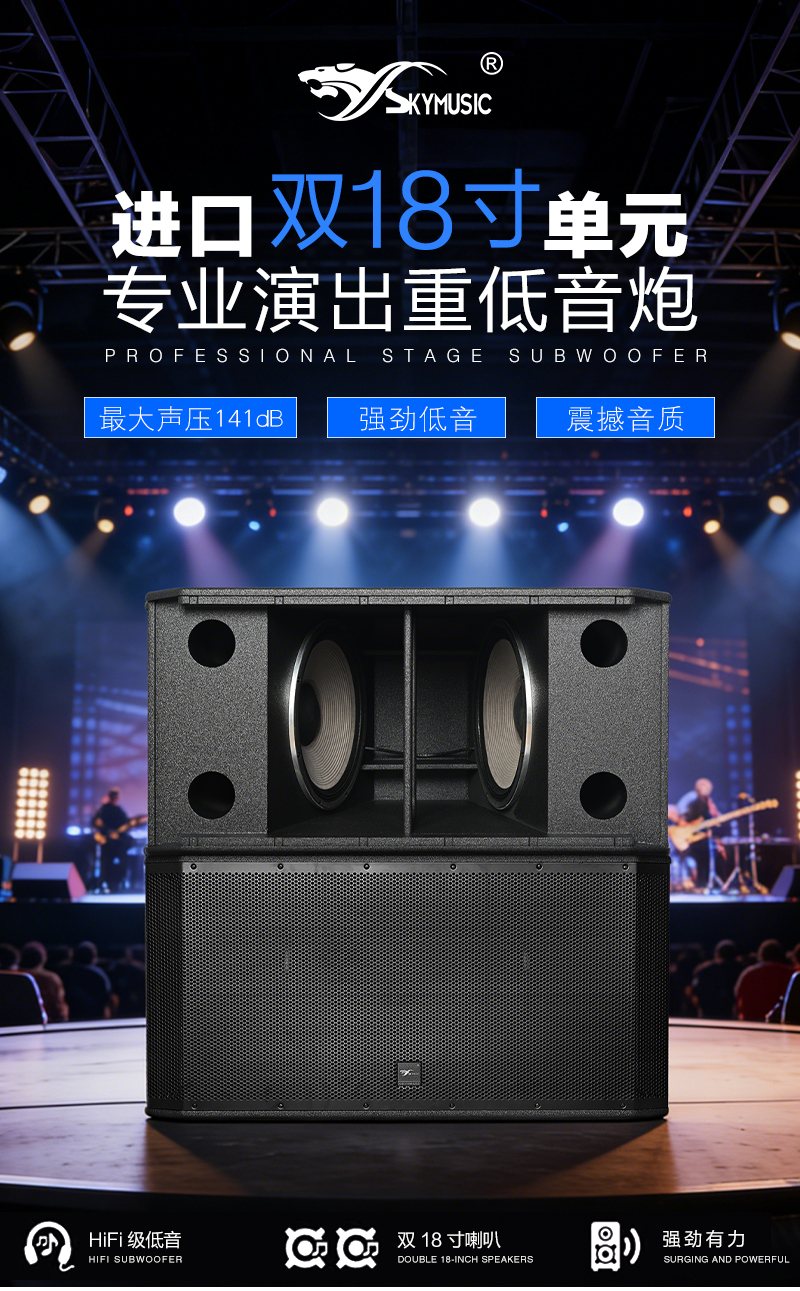 SRX828SP双18英寸有源超低音箱脚垫槽