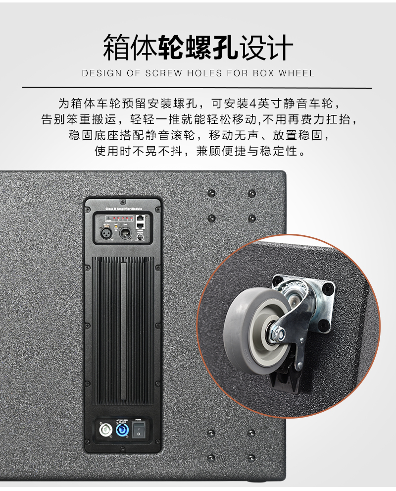 SRX828SP双18英寸有源超低音箱车轮螺孔