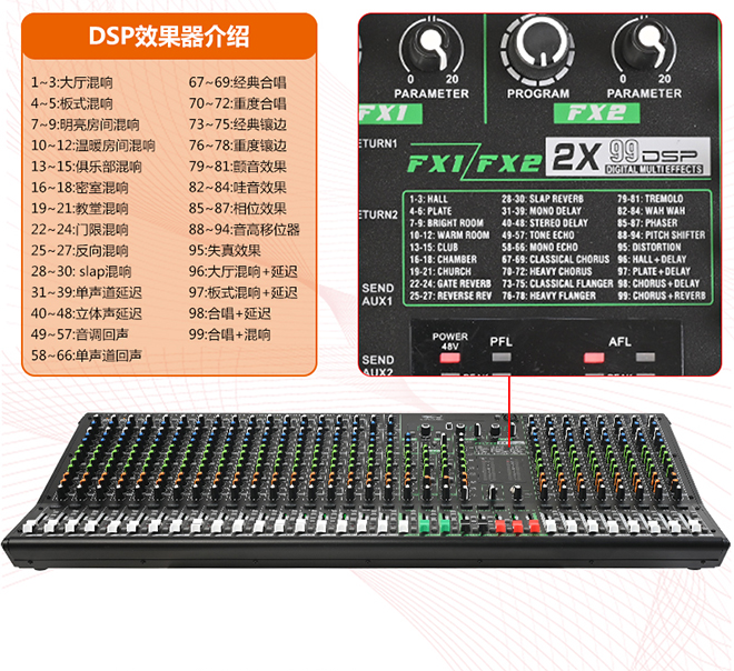 带双99位效果器的调音台