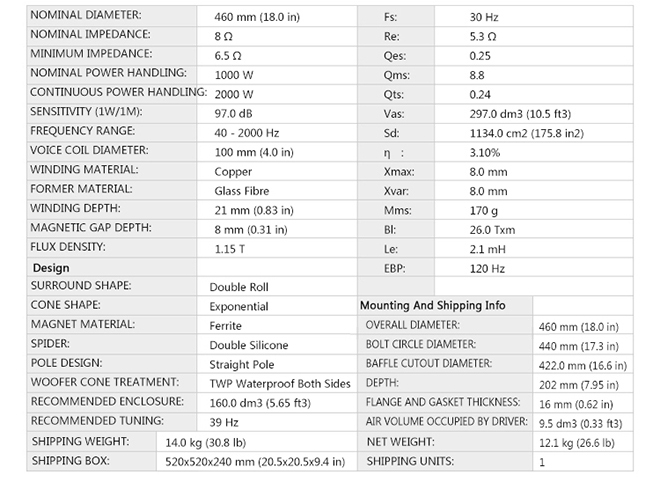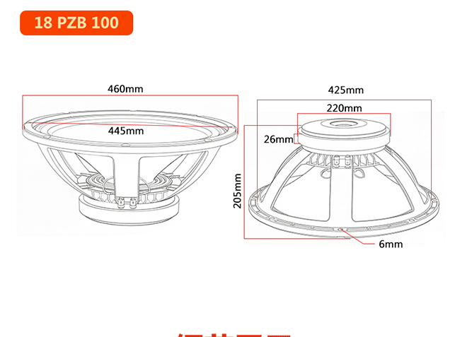 18SW100 18寸低音驱动器 钕磁低音喇叭