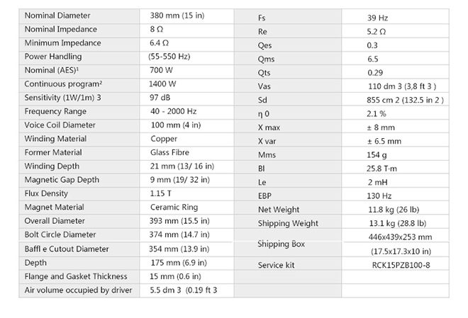 15PS100低音驱动器