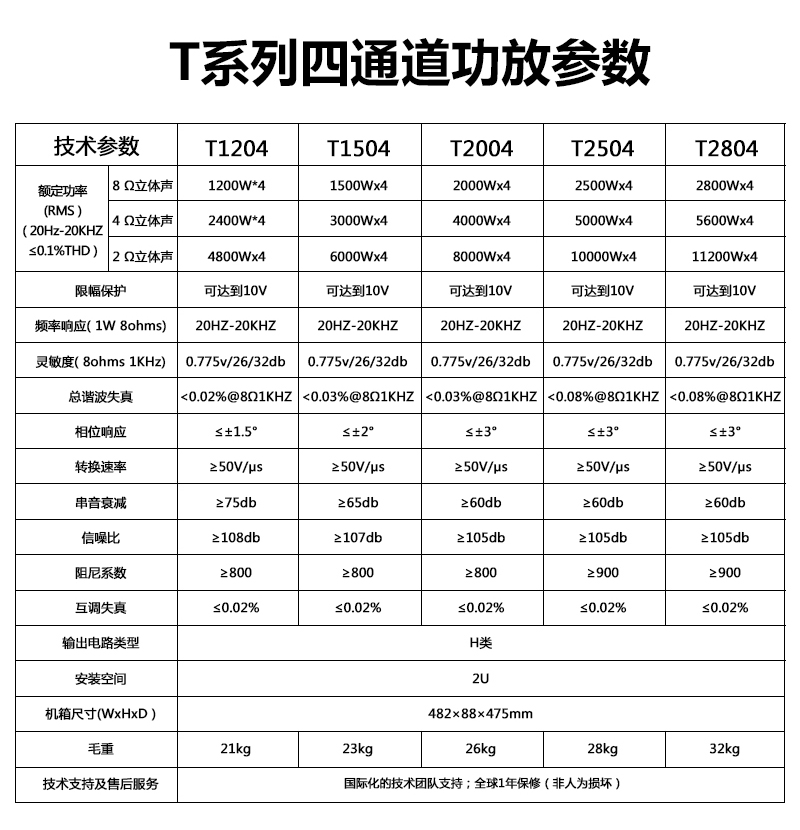 T系列H类功率放大器4通道