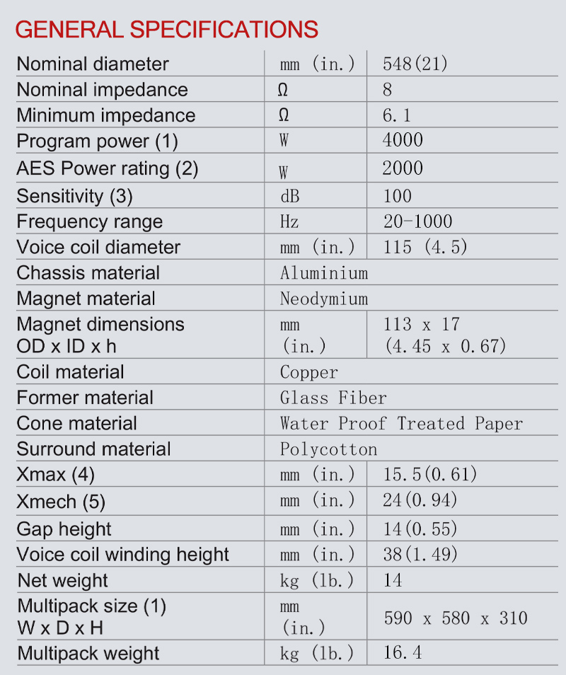 Driver/Raw Speaker - LF Driver - 21NSW115C 21-Inch High-Power Neodymium Subwoofer