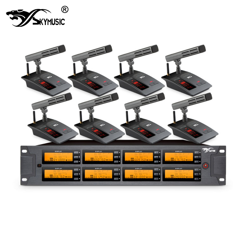 Metal base, external transmitting antenna, 40mm wide * 85mm high dot matrix screen main interface, Display the power of the meeting seat / speech status / time / working frequency point / frequency code / signal strength.