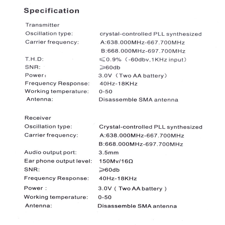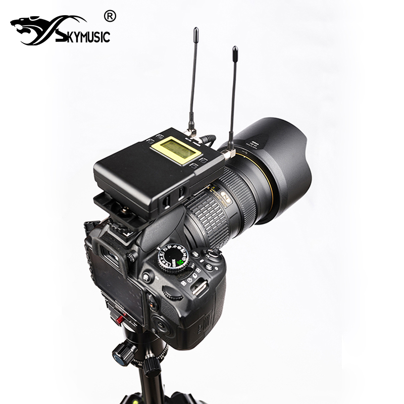 This wireless microphone system includes two transmitters and one receiver System can use with small video camera or the digital inter- changeable lens camera it 's suitable for the eng(electronic news interview),EFP(Electronic field production), sports event, micro film wedding and so on. The system has DSP(Digital signal processor in place, can process the high quality sound transmission through the digital compandor and also can transfer the setting frequency of receiver and the comp EXP mode to the transmitter through the ir communication link,To use with the function of receiver, can sharply reduce the time of setting channel.