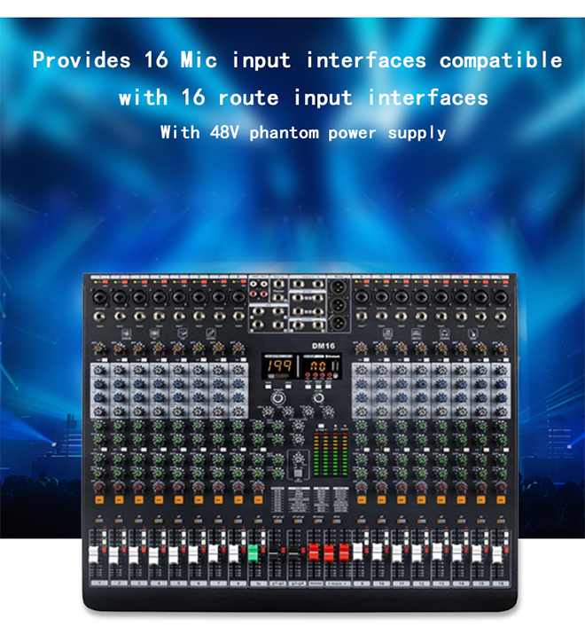 2. Provide 16 Mic input interfaces compatible with 16 line input interfaces, with a 48V phantom power supply.