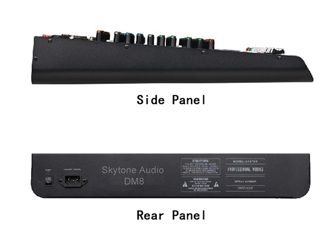 3. Provide 8 channels of+48V phantom power supply and dual row level lights.