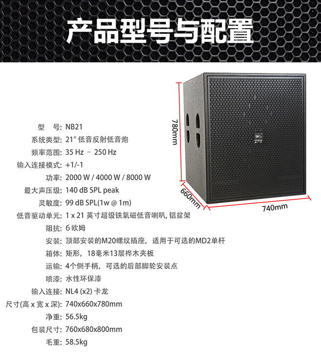 专业音箱 - 超低音系列 - NB21 单21寸超低音