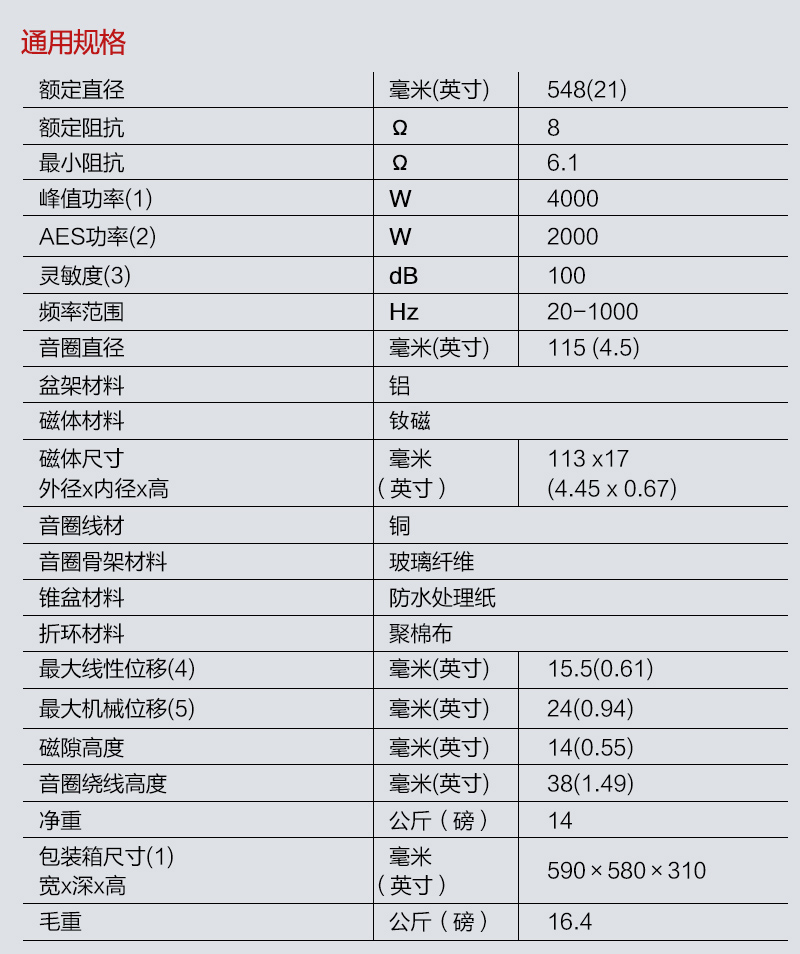 单元驱动/喇叭 - 低音驱动 - 21NSW115C 21寸大功率钕磁低音扬声器