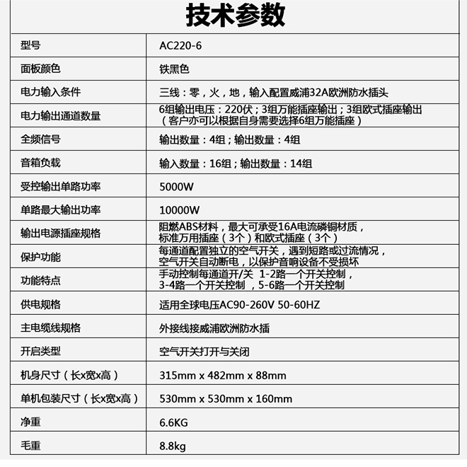 AC220-6 线阵系统电源管理箱