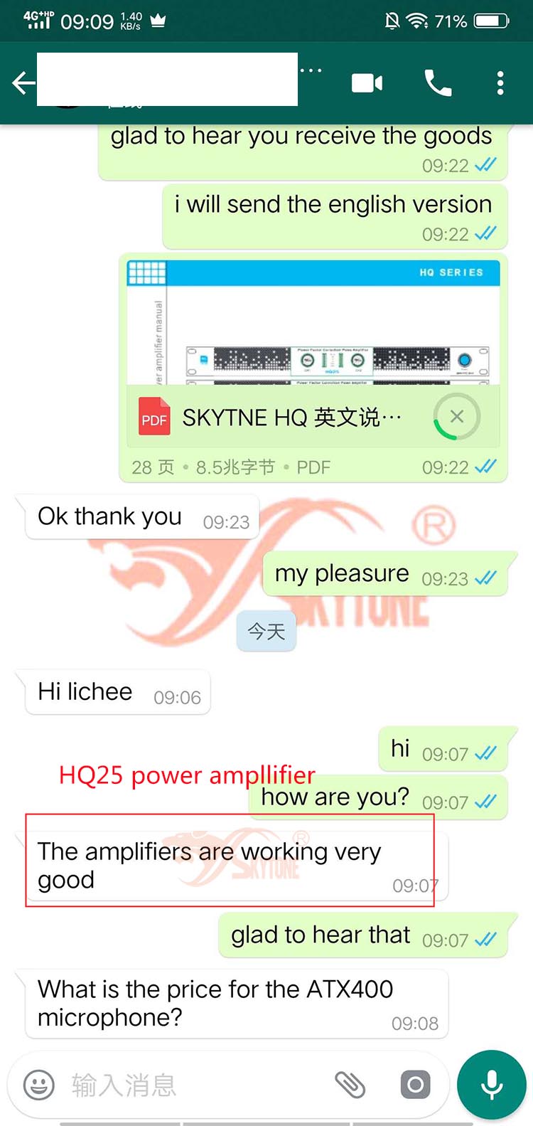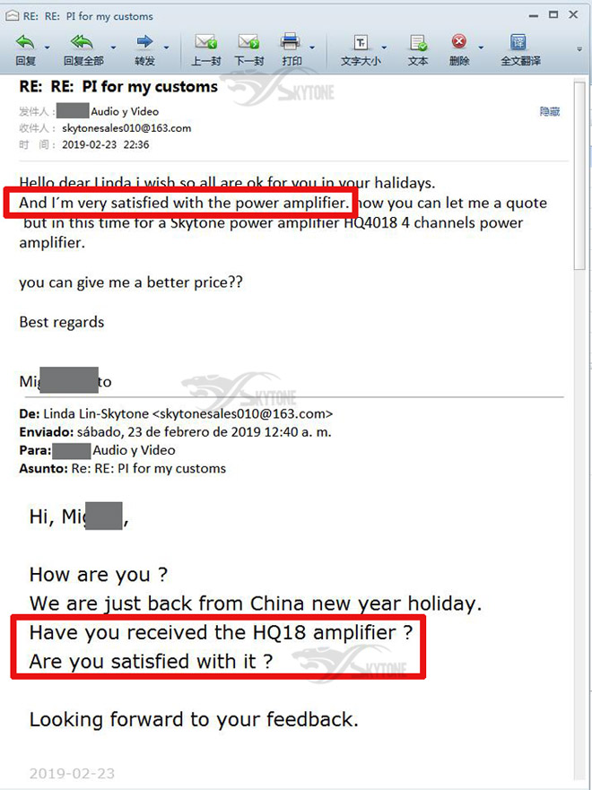 2019年2月23日,墨西哥客户邮件反馈对HQ18功放很满意。