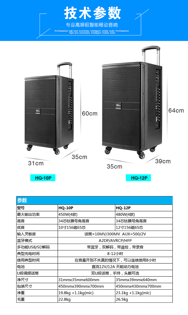 HQ10P HQ12P 移动拉杆音箱带话筒
